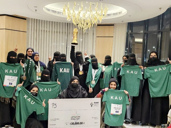 King Abdulaziz University congratulates its female students for achieving first place in the Saudi University Sports Federation Athletics Championship for Students with Disabilities, held in Hail.